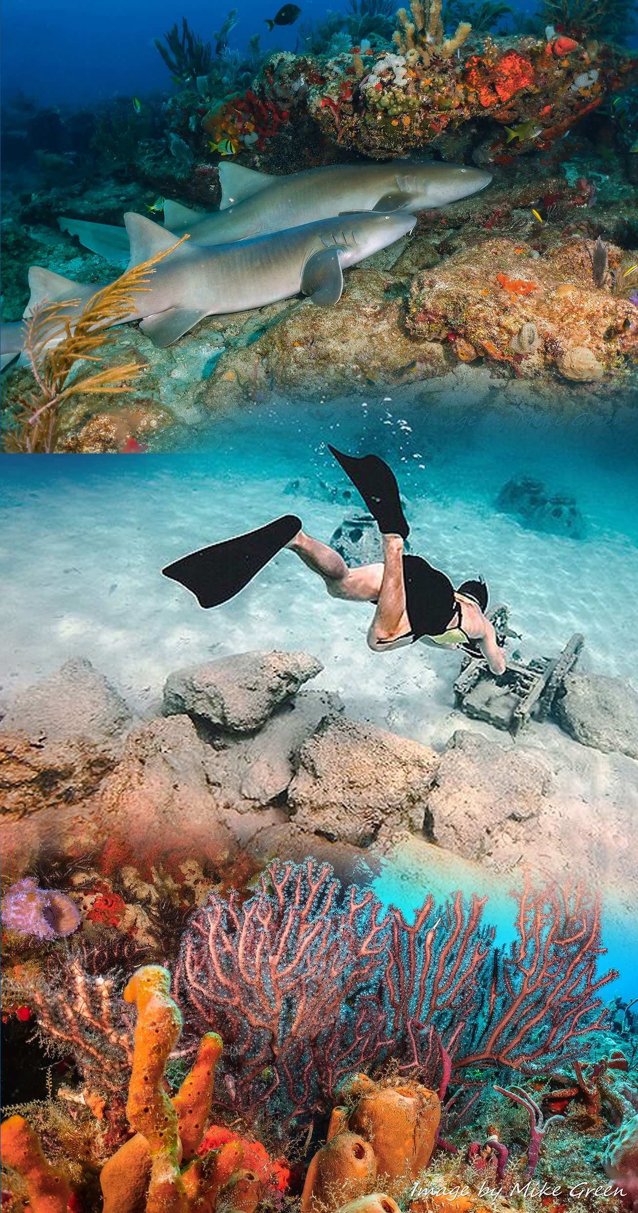 - Shark Canyon (72–90 ft) Known for its resident reef sharks and a 400+ lb Goliath Grouper named Shadow, who loves posing for photos!